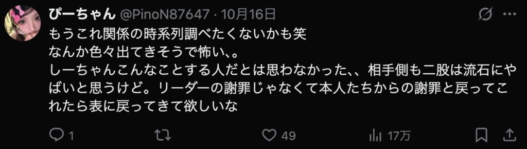 ファンの特定班、すごすぎる…。一体どんな匂わせがあったんだろう。